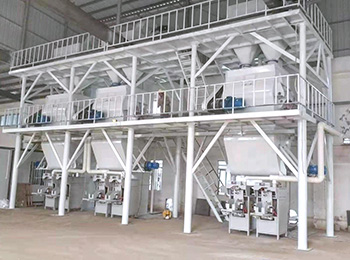 膩子粉生產(chǎn)線主要由原料儲存系統(tǒng),輸送系統(tǒng)、計量稱重配料系統(tǒng)、混合系統(tǒng)、氣動系統(tǒng)、除塵系統(tǒng)、包裝系統(tǒng)及自動控制系統(tǒng)...